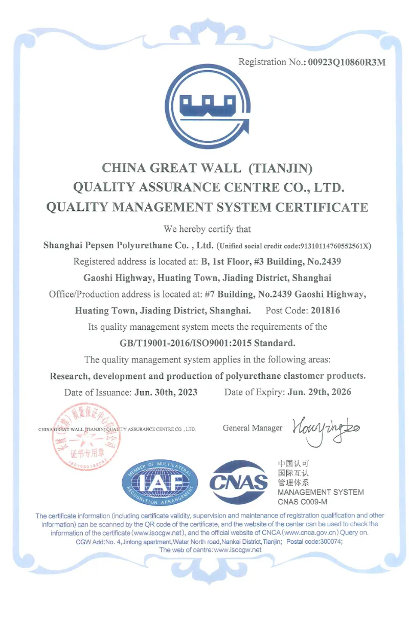 Established in 2004, Shanghai Pepsen is an ISO 9001:2015 certified company specializing in custom cast molded polyurethane products. We offer end-to-end solutions, including engineering design, custom urethane formulation development, molding, prototyping, manufacturing, and testing.